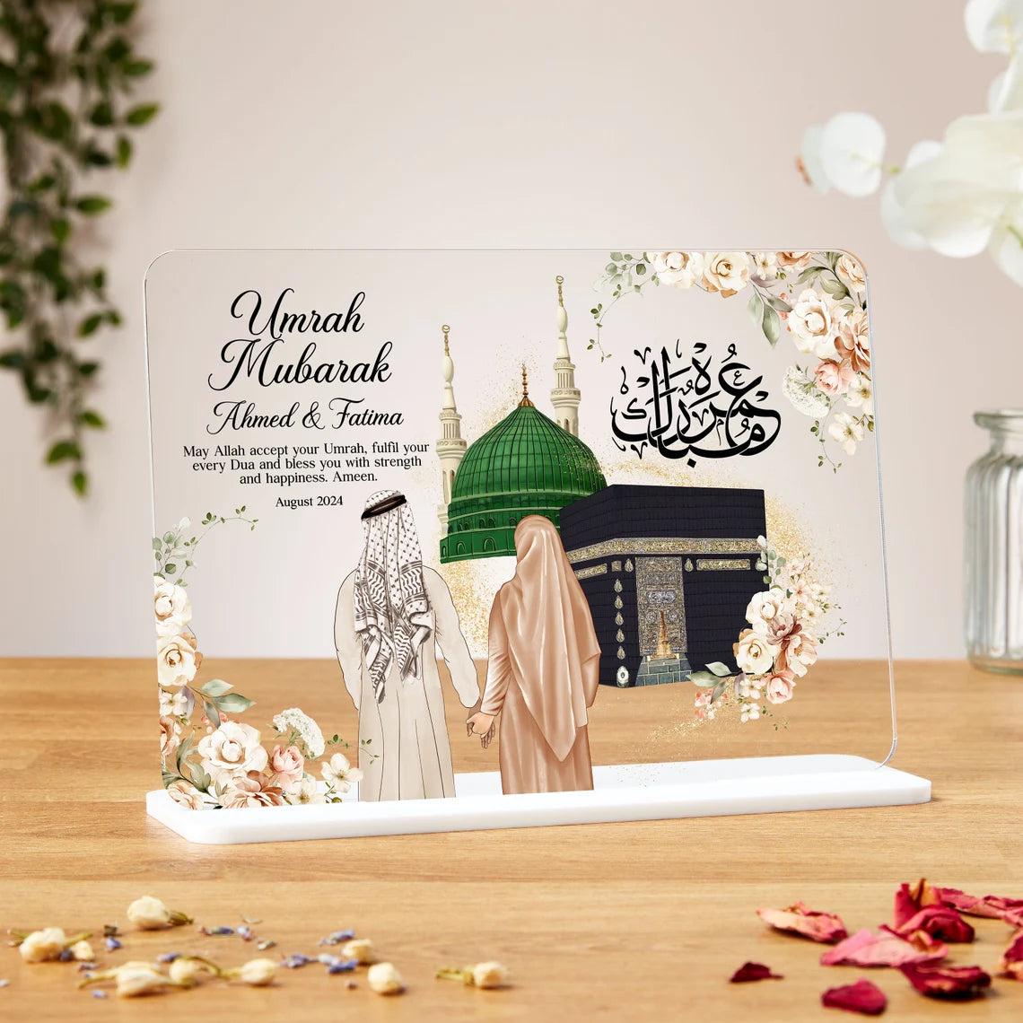 Our Umrah Mubarak acrylic plaques are simply stunning, a reminder of the important day in the couple's life. This particular plaque comes in the shape of a heart with beautiful lavender flowers around the plaque.